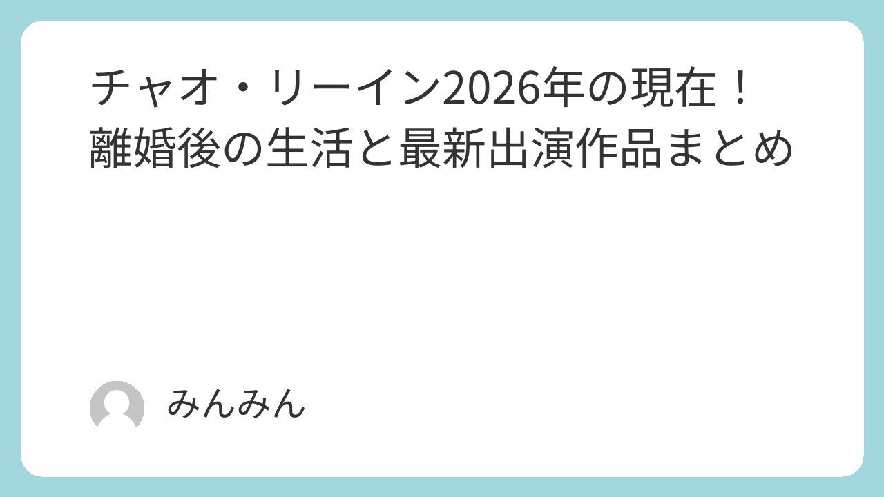 この記事では、そんなチャオ・リーインさんの現在の活動・出演作・恋愛事情・子育ての様子・これからの展望まで、最新情報をまるっとまとめてご紹介します。