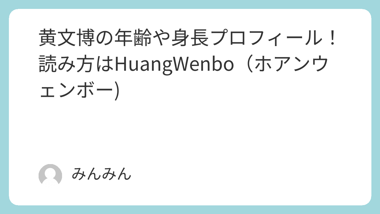 黄文博(Huang Wenbo) の読み方は、カタカナだと ホアン・ウェンボーが、いちばん自然で一般的です。