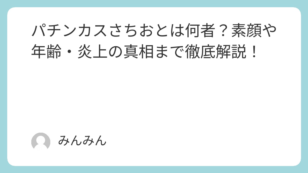 この記事では、そんなパチンカスさちおさんのプロフィールや素顔、年齢、彼氏・結婚の噂、さらには炎上や年収の話まで、まるっとわかりやすく解説していきます!